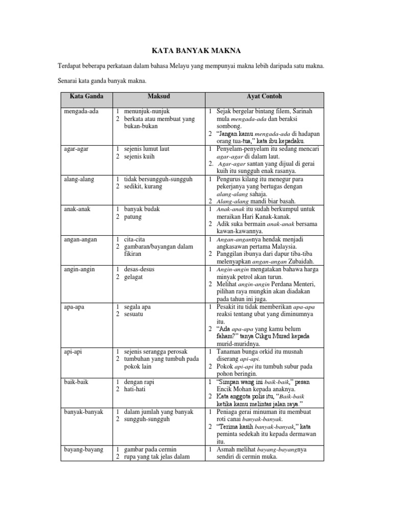 Perkataan Banyak Maksud Dan Contoh Ayat